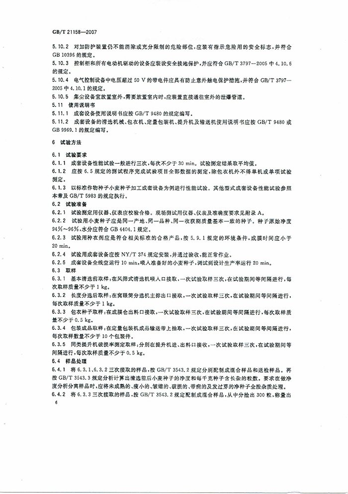 GB/T21158-2007種子加工成套設(shè)備國家標準